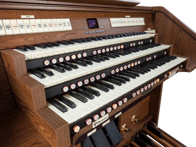• 51 tilt-tab speaking stops and 4 orchestral pistons